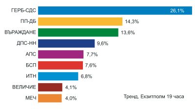 ГЕРБ печели изборите с 26,1%