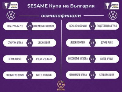 Ето как изглежда пълният жребий за 1/8-финалите за Sesame Купа на България: