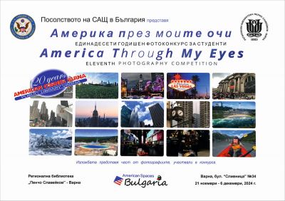 В Регионална библиотека „Пенчо Славейков“ във Варна ще бъде представена гостуващата изложба „America through Мy Еyes” / “Америка през моите очи“. Експозицията включва селекция фотографии от ХI фотоконкурс „Америка през моите очи“, направени от български студенти по време на лятната програма за работа и пътуване в САЩ.