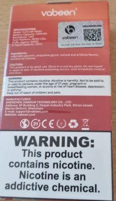 Никотинът е силно токсичен и може да застраши безопасността на потребителя, особено ако продуктът влезе в контакт с кожата или бъде погълнат. Поради обозначенията и изображенията на хранителни продукти/ягода и топка сладолед/, върху потребителската опаковка продуктът е привлекателен за деца.