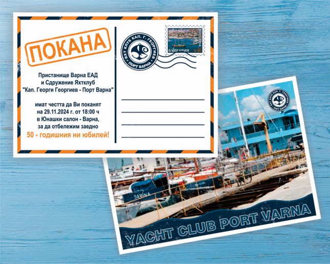 Юбилейните 50 години от създаването на яхт клуб „Капитан Георги Георгиев Порт Варна“ ще бъдат отбелязани на 29 ноември от 18:00 ч. в Юнашкия салон във Варна с подкрепата на Община Варна и Дирекция Спорт. Организаторите на тържеството са се заели с нелеката задача да поканят всички бивши членове на клуба, ветерани, представители на спортни и яхт клубове, ръководството на федерацията и др.