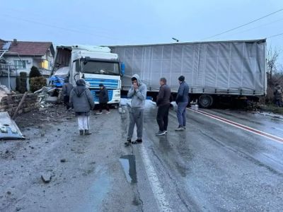 Румънски ТИР се е блъснал последователно в ограда и навес на къщи в село Самоводене, съобщиха от полицията във Велико Търново.