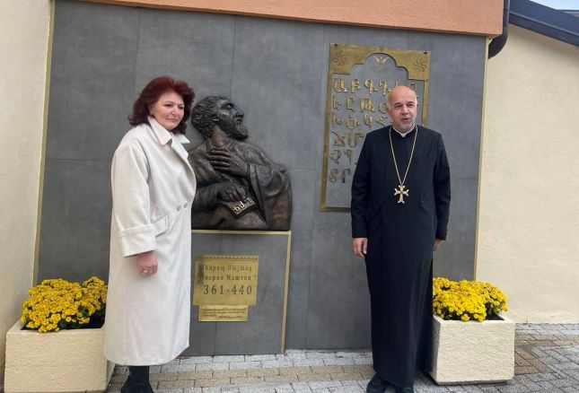„Децата учат в български училища, както е редно, а наш дълг е да направим възможно те да знаят и майчиния си език – арменския“. Това е и мотивацията ни, със съдействието на Църковното настоятелство на храм „Свети Саркис“, да поставим барелеф с облика на създателя на съвременната арменска азбука пред прага на арменското училище в града. Така децата, които идват, по най-естествен начин започват да научават буквите, а после и арменския език, който е доста труден“. Така председателят на Арменската благотворителна общност ХОМ – Шохик Симонян, обясни мотивите за поставянето на образа на Месроб Мащоц на входа на училището. Роденият през 362 г арменски духовник е и преводач, и основоположник на съвременната арменска азбука и училище.