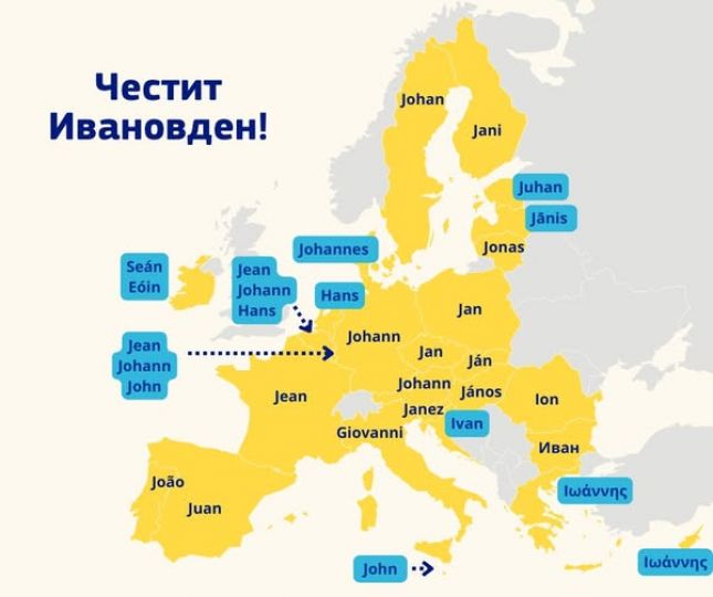Името Иван има аналози в повечето държави на Стария континент, припомнят от Европейската комисия в България чрез публикация на официалния си фейсбук профил.