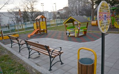 Всяка от тях ще има отделна площадка за игра. В двора е изградена и спортна площадка. Заедно със строителството на новата сграда беше асфалтиран и паркингът на заведението, където по изискване е монтирана зарядна станция за електромобили.