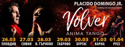 Пласидо Доминго-младши, син на прочутия испански тенор, пристига за първи път в България. Певецът, композитор и продуцент ще представи своето концертно шоу Volver – Anima Tango във Варна и още 6 български града.