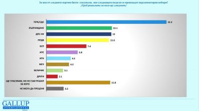 Осем партии биха влезли в парламента, ако следващата неделя се проведат избори. Това показват данните от експресно национално представително проучване на „Галъп интернешънъл болкан“, проведено в периода 8-12 януари с телефонно интервю на 800 пълнолетни граждани.