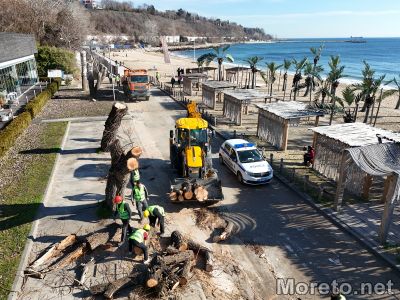 Дърветата попадат в трасето на изкопните работи на обекта за полагане на нов водопровод по крайбрежната алея.
