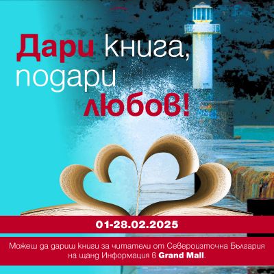 Включете се и в кампанията "Дари книга, подари любов" на ИК "Кибеа" - донесете ваши книги - дар за библиотеки, читалища и училища от Североизточна България. Споделете с нови читатели любовта към четенето.
