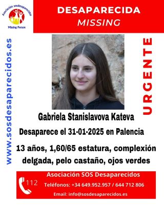 Габриела Станиславова Катева е в неизвестност от 31 януари. Момичето е изчезнало от испанския град Паленсия.