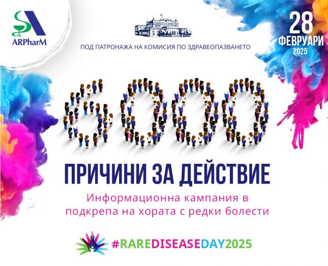 За втора поредна година ще се проведе информационна кампания „6000 причини за действие“ в подкрепа на пациентите с редки болести. Инициативата се организира от Асоциацията на научноизследователските фармацевтични производители в България и се провежда под патронажа на Комисията по здравеопазването към 51-то НС.