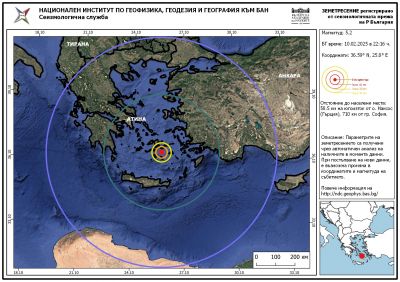 Снощи край Санторини бе регистриран трус с магнитуд 5.2 по скалата на Рихтер. По данни на Националния сеизмологичен център към Националния институт по геофизика, геодезия и география към БАН, събитието е с епицентър на 580 км от град Гоце Делчев и на 710 км от София.