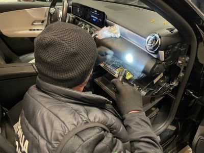 Инспекторите установили и втори тайник с електрическо заключване в средната конзола на автомобила, който бил празен към момента на проверката.