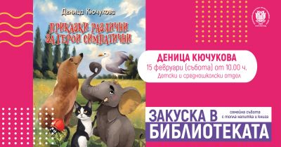 От 10.00 до 12.00 ч. авторката ще посрещне посетителите на „Закуска в библиотеката“ в Детския и средношколски отдел и заедно ще четат, свирят, рисуват, но най-важното – ще се смеят със слона Миролюб, мечката Минка и гларуса Пешо.