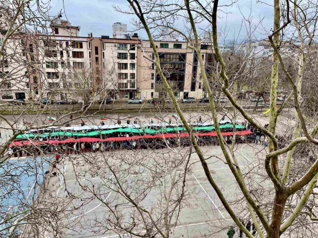 Варненско училище откри честванията за 3 март с огромен национален трибагреник (снимки)