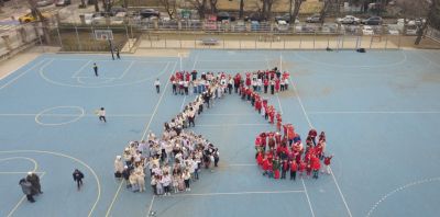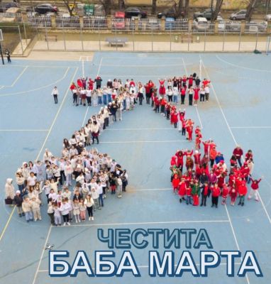 В двора на училището бе оформена "жива мартеница". В композицията се включиха десетки ученици от 1. до 7. клас.