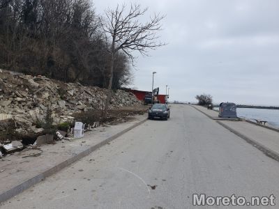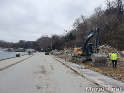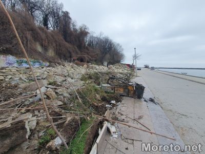 Продължава разчистването на строителните отпадъци от премахнатите обекти на крайбрежната алея във Варна, видя репортер на Moreto.net.