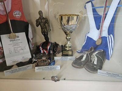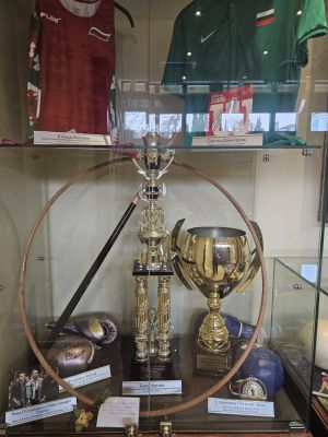 Редом с витрината, посветена на нежните дами от художествената гимнастика, стои тази с постиженията в областта на каратето и бокса. Неслучайно Варна отдавна си е спечелила прозвището „столица на бойните спортове“, подчерта Димитров. Специално място в колекцията заема оригинална купа на първия българин световен шампион по карате киокушин - Шихан Емил Костов, който триумфира в най-твърдия стил през 2001 г. в родината на този спорт - Япония. Във витрината са ръкавиците на световната и европейска шампионка по бокс Станимира Петрова, както и на световния шампион по кикбокс в стил К1 за професионалисти – Владимир Вълев (Питбула).