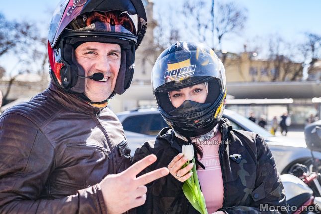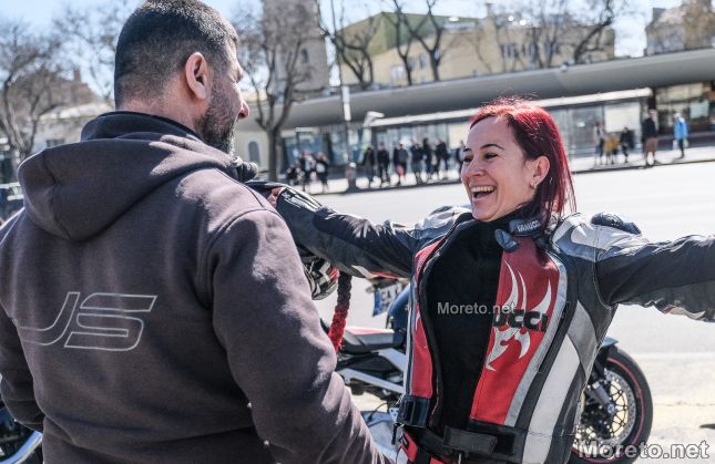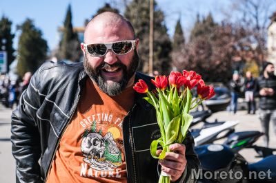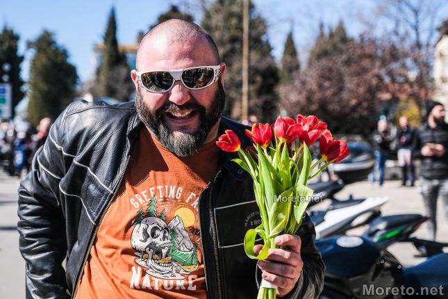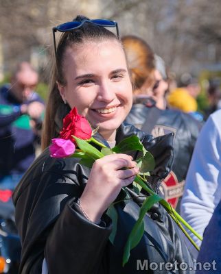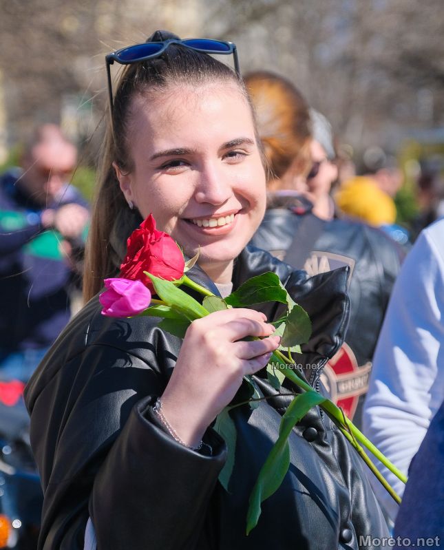 Сборният пункт бе пред Катедралата, където се събраха стотици мъже и жени на мотори, а мъжката половина раздаде цветя на дамите.