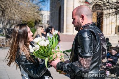 Жените мотористки бяха изненадани и от служител на охранителна полиция, който също подаряваше цветя, като обеща днес да няма санкции на пътя.
