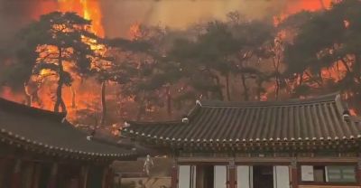 Огънят унищожи 1300-годишния храм Гунса в град Уи-сонг, като част от културните реликви са били спасени и преместени на безопасно място. Пожарите започнаха в петък следобед в окръг Санчонг и бързо се разпространиха към Уи-сонг.