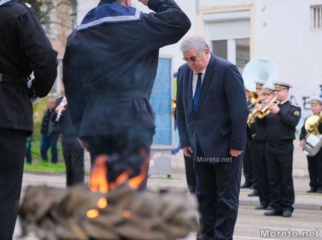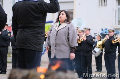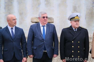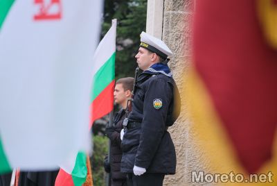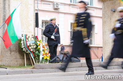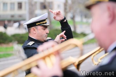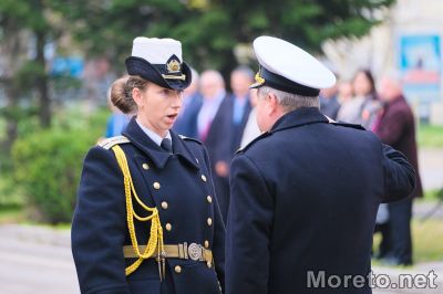След поднасянето на венци и цветя тържествен марш премина пред паметника под звуците на духовия оркестър на ВМС.
