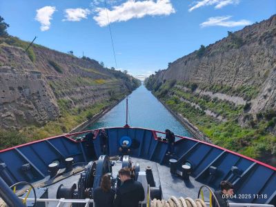 На 5 април полярният ни кораб премина през Коринтския канал, при прехода си от испанското пристанище Картахена до Турската военноморска академия в Тузла.