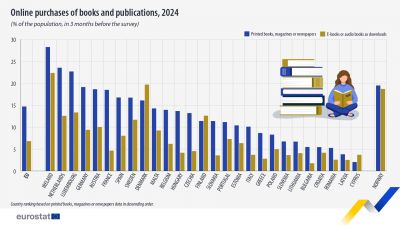През 2024 г. печатните книги остават предпочитаният формат за читателите при онлайн пазаруване в Европейския съюз. Според данни на Евростат, близо 15% от жителите на ЕС са купували печатни книги, списания или вестници онлайн през трите месеца преди проучването – над два пъти повече в сравнение с близо 7%, които са изтеглили електронни книги или аудиокниги.