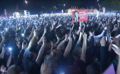 Близо 160 000 души се събраха снощи на площад "Баязид" в Истанбул в знак на протест срещу арестуването на кмета на града Екрем Имамоглу. Демонстрацията бе част от поредицата седмични митинги, организирани от основната опозиционна сила в Турция – Народнорепубликанската партия (НРП), под мотото "Нацията отстоява волята си".
