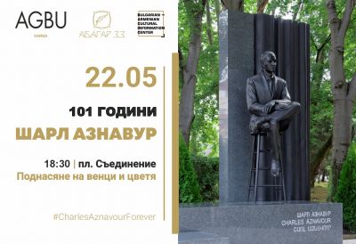 От 18:30 часа днес, 22 май, на пл. „Съединение“ във Варна ще се състои тържествено поднасяне на венци и цветя пред монумента на Шарл Азнавур по повод 101 години от рождението на великия артист.