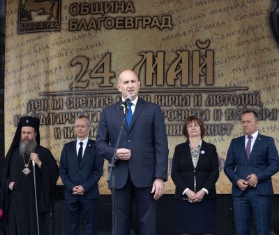 24 май е истински празник на българския дух, който вълнува млади и стари. Тържество на нетленното дело на Светите братя Кирил и Методий, на техните ученици и последователи през вековете и всеки българин, който се старае да пише правилно, да подбира думите си и който милее за словото, също е следовник на нашите български просветители. Това заяви президентът Румен Радев, който днес посети Благоевград и участва в тържественото отбелязване на 24 май – Ден на светите братя Кирил и Методий, на българската азбука, просвета и култура и на славянската книжовност и официален празник на града. По-рано през деня държавният глава бе гост на Националната хуманитарна гимназия „Св. Св. Кирил и Методий“ в Благоевград, където поздрави абитуриентите от Випуск 2025 и поднесе цветя пред паметника на светите братя.