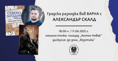 Специален гост е екологът и писател Александър Скалд – автор на фентъзи романа „Вой“ и сборника с кратка проза „Северозападни разкази“. Темата на вечерта ще бъде природата и нейното място в творческия процес, а самата разходка ще завърши в зона „Екзотика“ на Морската градина, където Скалд ще представи книгите си и ще отговори на въпросите на публиката.