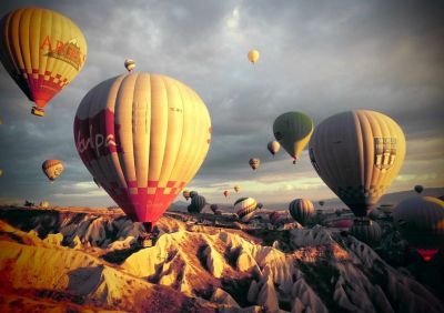 Летенето с балон с горещ въздух е една от туристическите атракции в Кападокия. Районът е богат на високи конусовидни скални образувания, в чиито стени са вкопани древни църкви. Те са защитен обект от световното културно наследство на ЮНЕСКО.