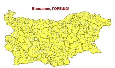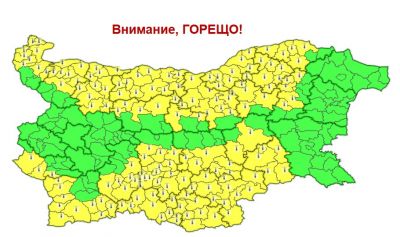 Жълт код за опасно горещо време е в сила днес за половината области на страната. В северните и южните части се очакват темпертури до 37 градуса, предупреждават от Националния институт по метеорология и хидрология (НИМХ).