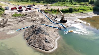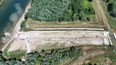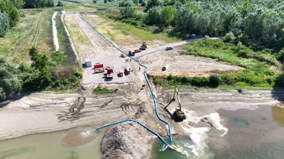 Извършени са всички необходими подготвителни дейности – обработен е участък от ръкава на Дунав с дълбочина около 1,5 метра, укрепени са пътищата и достъпът до изградена площадка, което позволява ефективно изпомпване на вода към езерото.