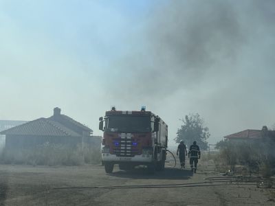 Пламъците се намират в непосредствена близост до няколко постройки, като пожарникарите полагат усилия огънят да не достигне до тях.