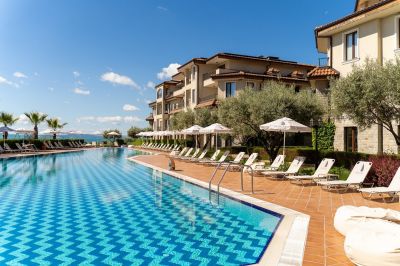 🏊♀️ Релакс под слънцето – басейни с кристално чиста вода, шезлонги и чадъри, оформящи идеалната зона за отдих и бягство от градския ритъм.