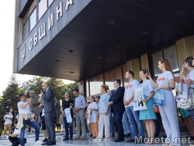 • Пред сградата е и кметът на Бистрица Самуил Попов от ПП–ДБ, който се обърна към събралите се с думите: