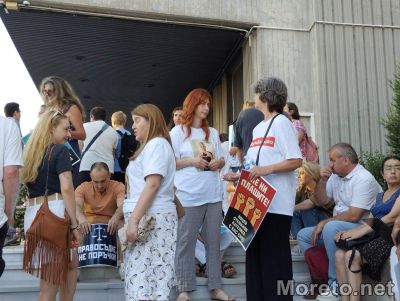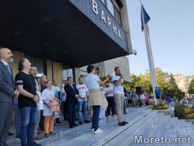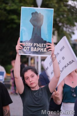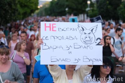 Сред плакатите са такива с послания като: „Долу ръцете от Варна“, „Днес е Благо – утре си ти“ и „Правосъдие, не поръчки“.