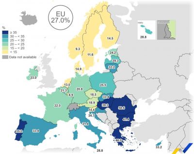 За сравнение, в другия край на класацията са Люксембург (8,9%), Швеция (11,6%) и Нидерландия (13%).