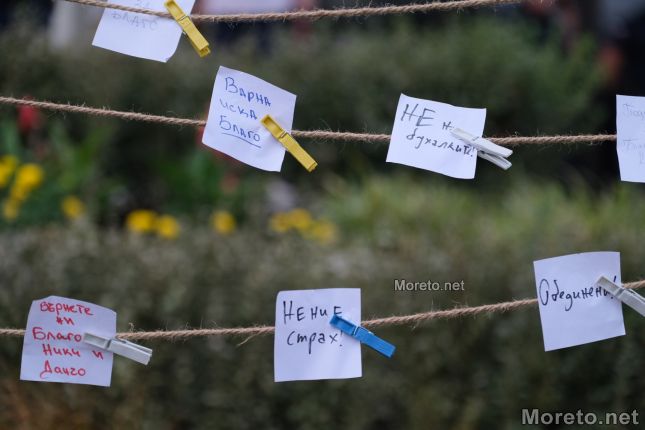 Гражданите държат плакати с послания като: „Варна не е сцена за репресии“, „Не ни плашите! Коцев, Стефанов, Кателиев, с вас сме!“, „Защити демокрацията. Изгони мафията“, „Europe, let`s fight the mafia together!“, „Долу ръцете от Варна“, „Варна не се продава“, „Днес е Благо, утре си ти.“ и други.