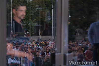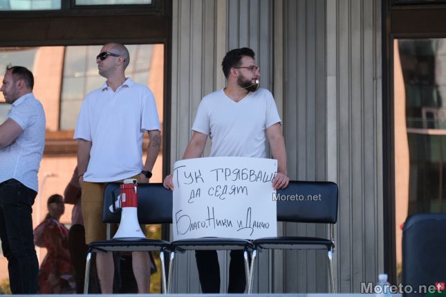 На входа пред сградата на Община Варна са разположени три стола, върху които стои плакат с надпис "Тук трябваше да седят Благо, Ники и Данчо", предаде репортер на Moreto.net