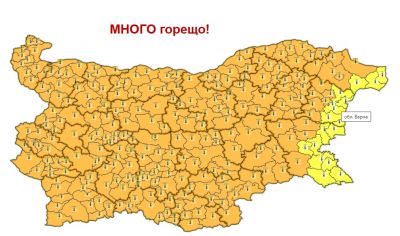 Днес е петият пореден горещ ден. Оранжев код за екстремно високи температури е в сила за цялата страна (без област Добрич, където кодът е жълт), като температурите ще са в порядъка 38-41 градуса. Единствено в крайморските общини температурата ще е по-поносима - 31-33 градуса.