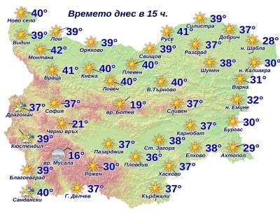 След Монтана, най-високи температури са регистрирани във Враца и Русе – по 41°C.