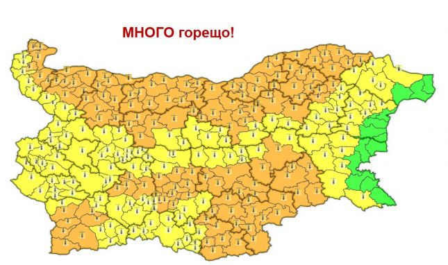 За голяма част от страната за днес, 11 август, е обявен оранжев код за опасни горещини. Температурите ще достигнат 38-41 градуса, предупреждават от Националния институт по метеорология и хидрология (НИМХ).
