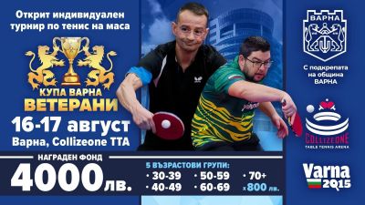 Днес и утре, 16 и 17 август, Варна ще бъде домакин на второто издание на открития индивидуален турнир по тенис на маса за ветерани „Купа Варна“. Събитието се организира от СКТМ „Варна – 2015“ с подкрепата на Дирекция „Спорт“ към Община Варна и ще се проведе в зала „Колизеоне“ в МОЛ „Двете кули“.
