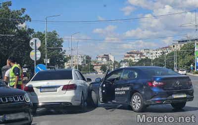 Единият от автомобилите е служебно "Рено" на Национална агенция за приходите". Другата кола е "Мерцедес: със софийски номера.