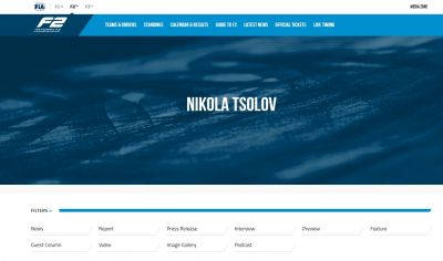 Официалния сайт на Формула 2 публикуваха секция с името на Цолов.