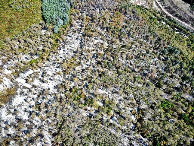 Няма тлеещи участъци при пожара в гората над кв. „Аспарухово“. Огънят е напълно потушен, като няма опасност от ново разпространение. Това показват кадрите от дрон, направени от служители от отдел „Отбранително-мобилизационна подготовка“ към Община Варна. Записите ще бъдат предоставени и на Службата за противопожарна безопасност и защита на населението.