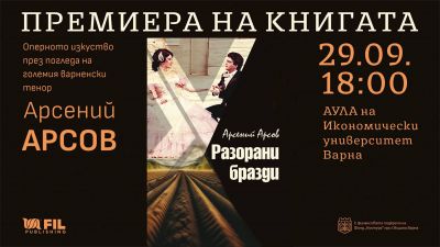 Издателство ФИЛ – Варна представя новото си колекционерско издание – мемоарната книга „Разорани бразди“ на големия български тенор Арсений Арсов. В обем от 376 страници и повече от 200 фотографии, книгата е истинска хроника на артистичен живот, прекаран на световните оперни сцени.